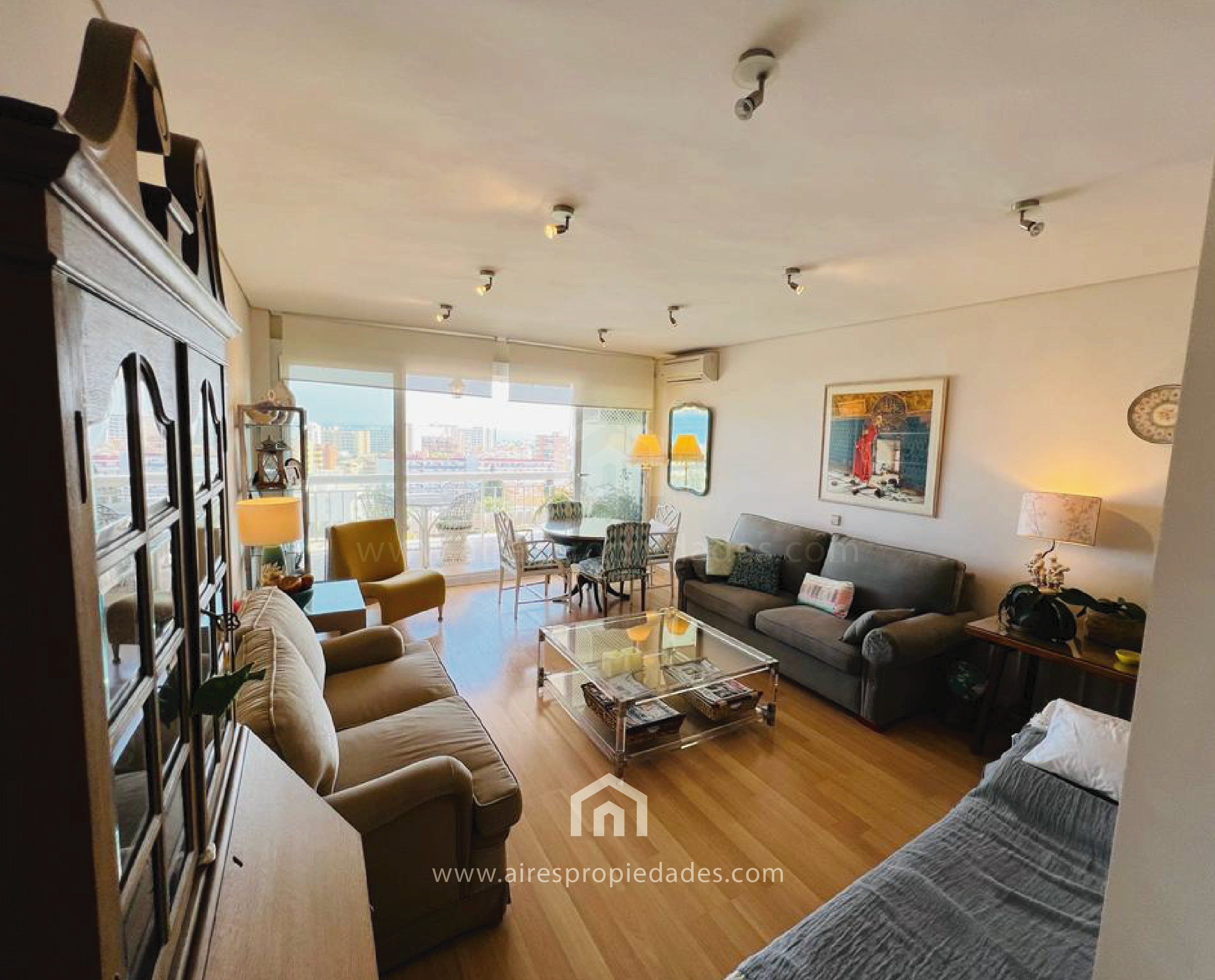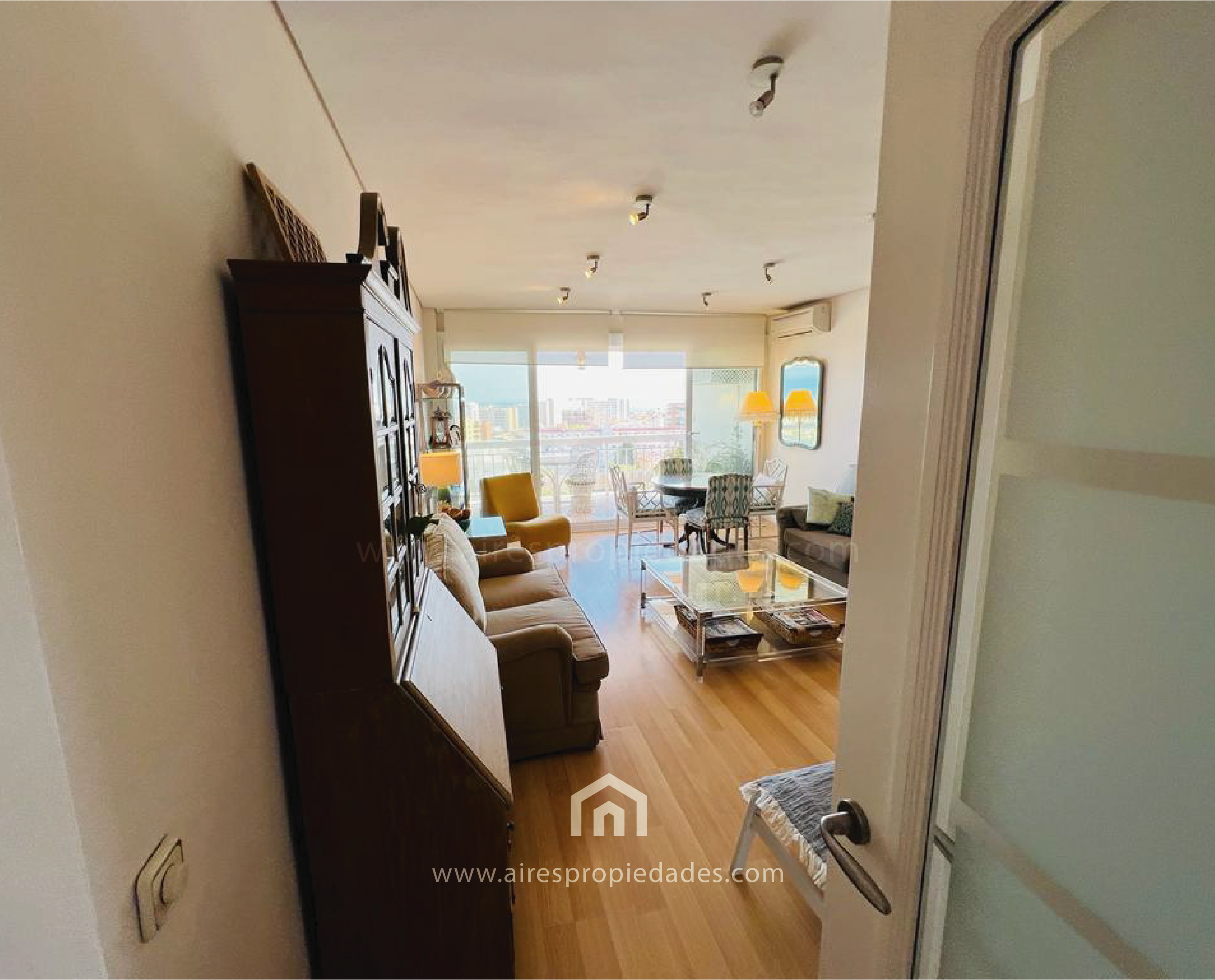 El salon es muy amplio y tiene salida a una gran terraza con magnificas vistas al mediterráneo y la playa de la carihuela. Orientación sur, super luminoso. Posee plaza de Garaje incluida en el precio.